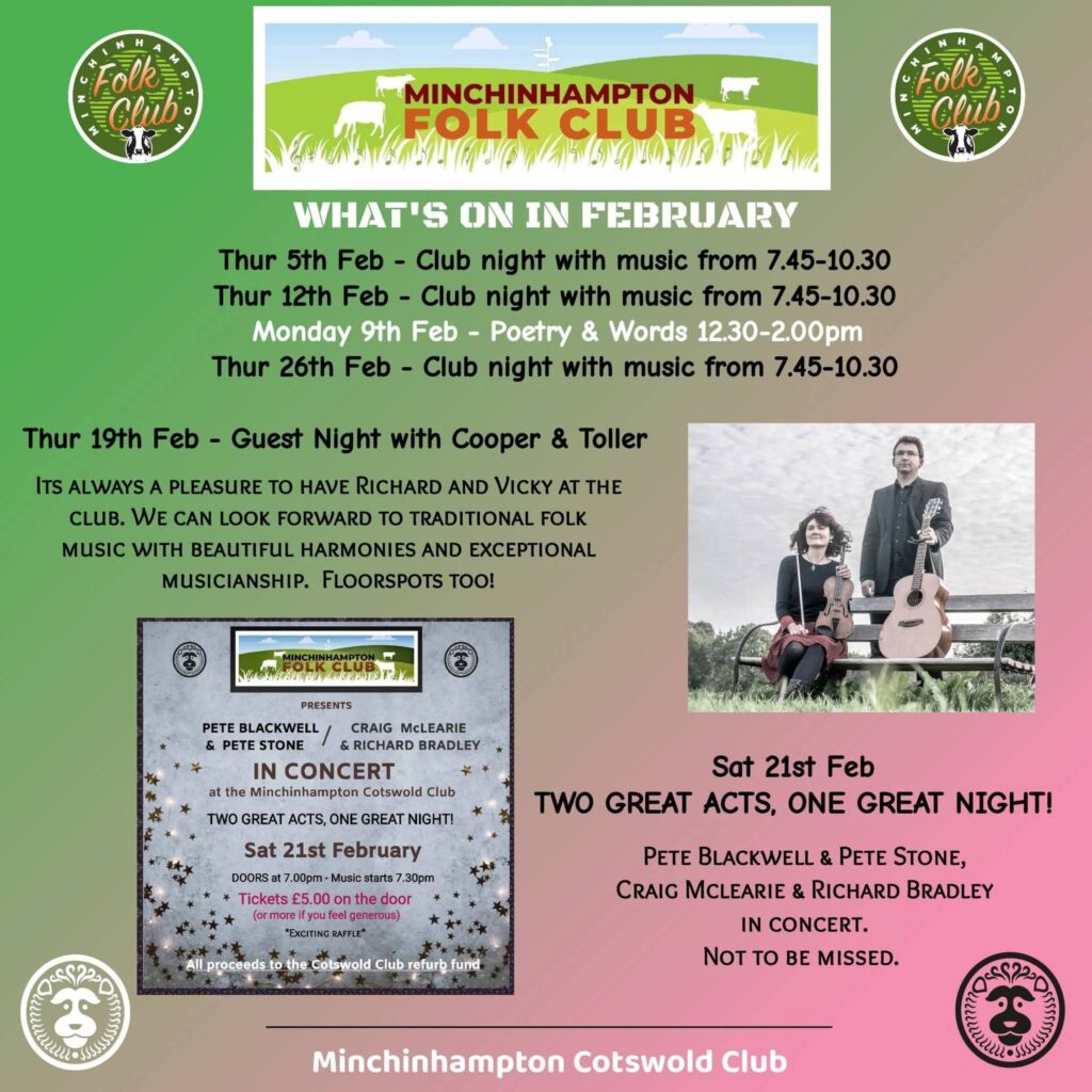 ● On arrival, please either join the Cotswold Club (or rejoin if lapsed) or if you come as a guest complete the guest book available near the bar. We suggest a £2 min donation to the Folk Club on each visit to help us cover overheads, book occasional bands etc. A collection box is available.
