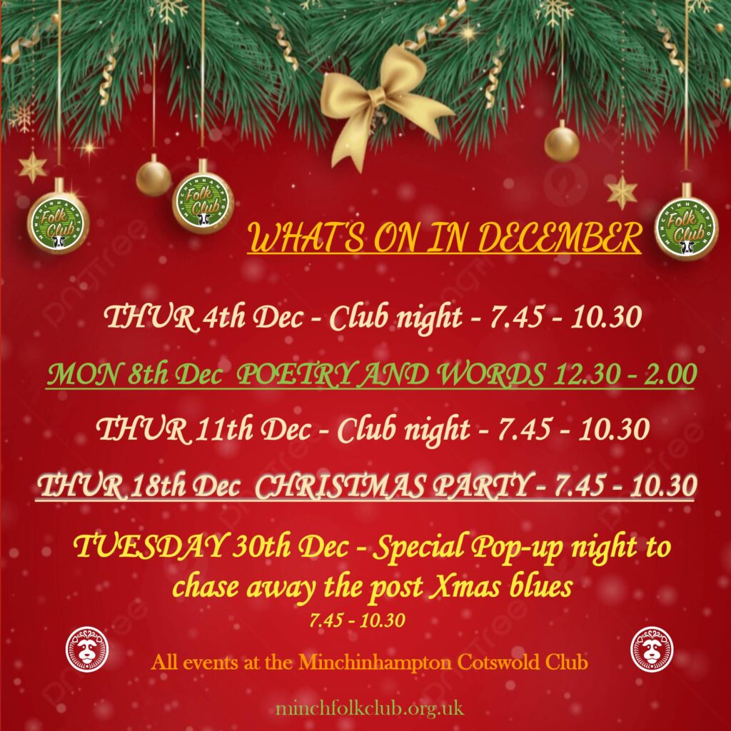 Music starts at 7.45 as usual. Plenty of floorspots. Members, guests performers and audience all welcome at the Minchinhampton Cotswold Club