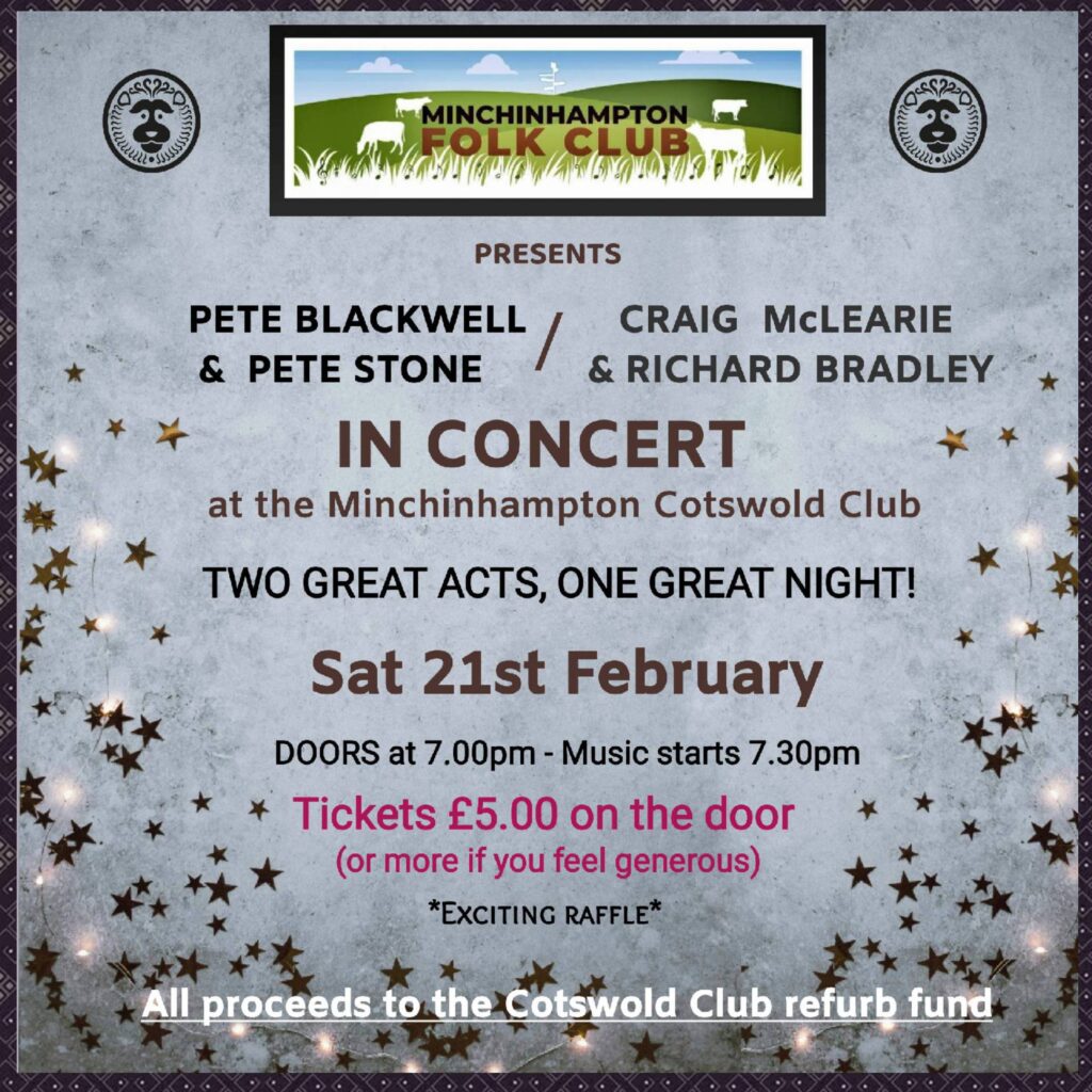 Pete Blackwell & Pete Stone, Craig Mclearie & Richard Bradley, in Concert. Saturday 21st February.